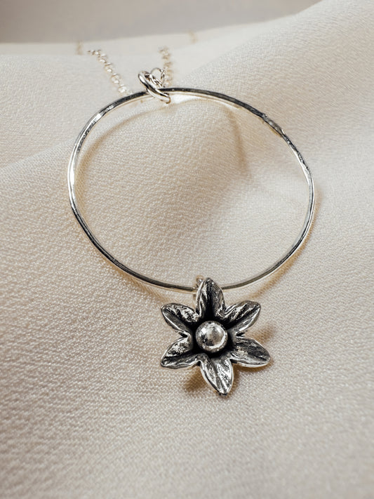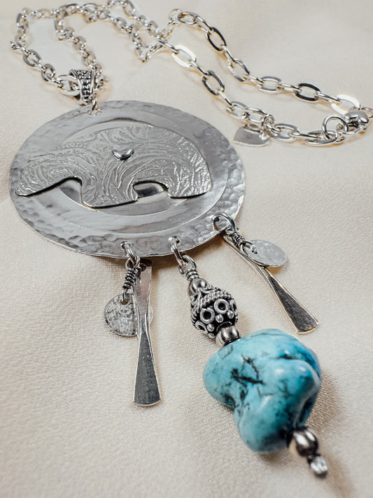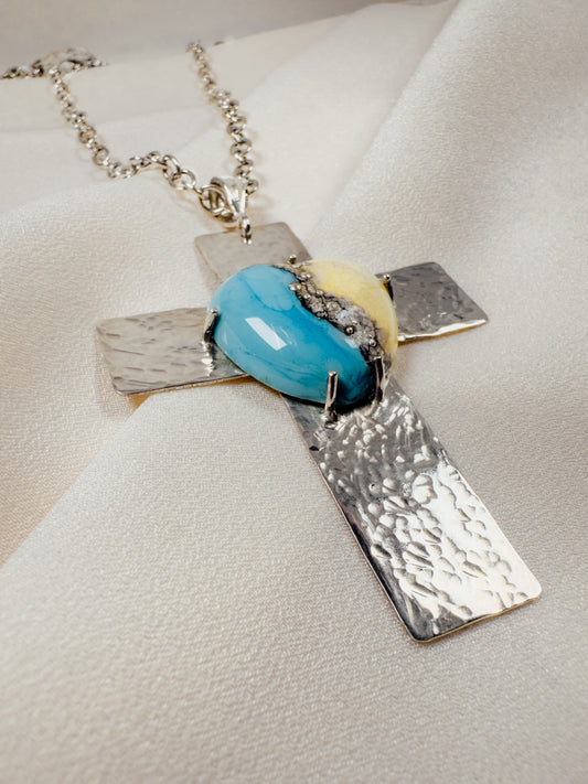 Rustic Sterling Silver Cross Necklace with Lampwork Bead