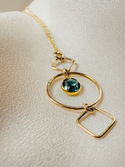 Gold-Filled, Crystal, Square and Round Dangle Necklace