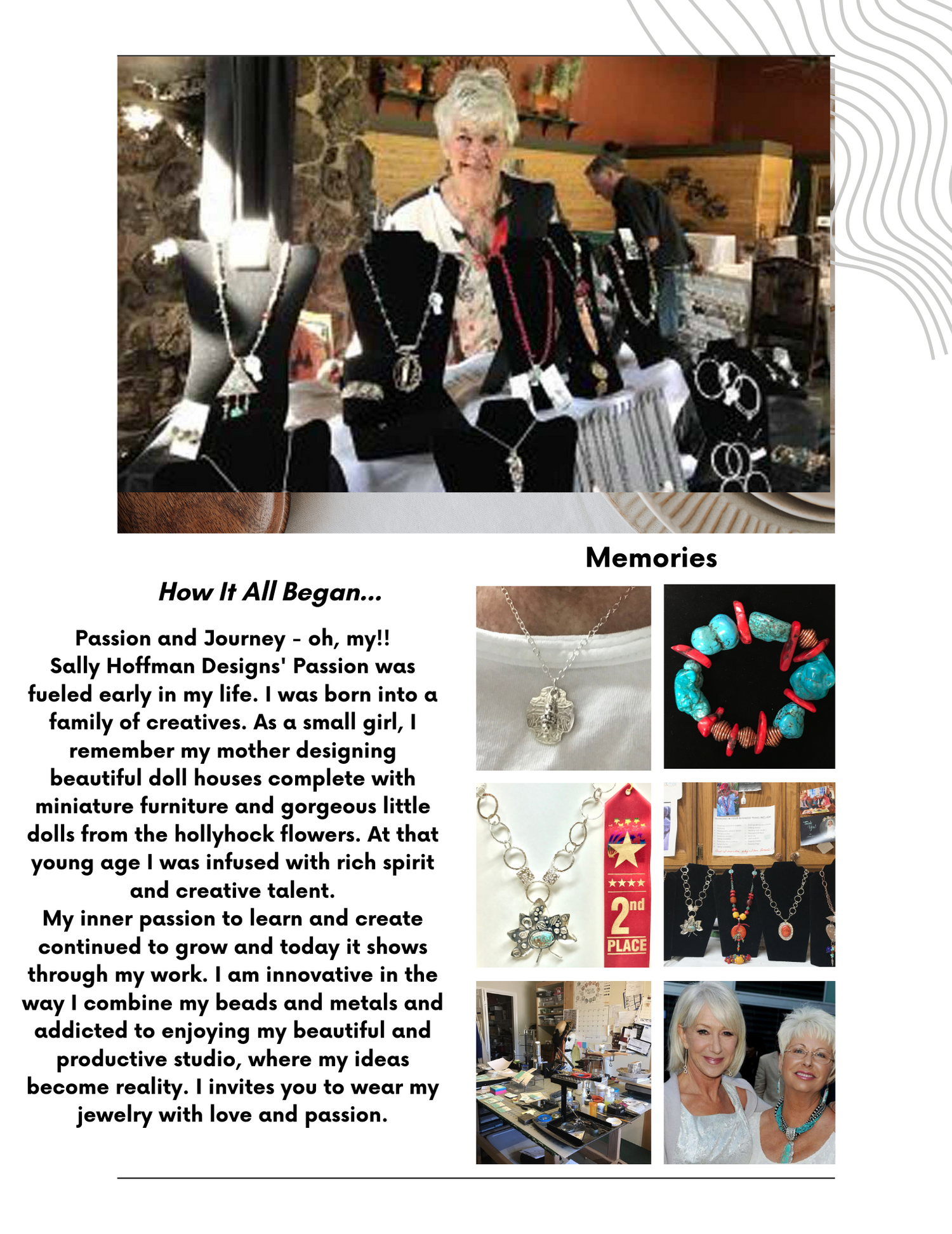 At Sally Hoffman Designs, my mission is to create meaningful, handcrafted jewelry that celebrates your spirit, honors your journey, and helps you feel confident, beautiful, and uniquely you. Through thoughtful design, quality craftsmanship, and a deep love for creativity, I aim to build lasting connections—one piece of jewelry at a time.